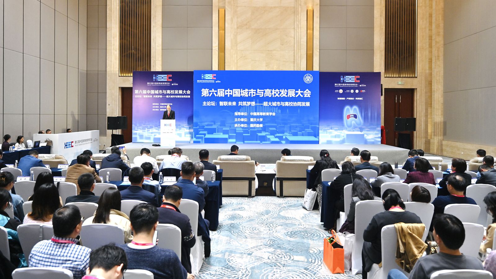 11月15日,由中国高等教育学会指导、重庆大学主办的第六届中国城市与高校发展大会顺利召开,此次大会是第62届中国高等教育博览会的重要活动之一。中国高等教育学会副会长、教育部原党组成员、副部长林蕙青,重庆市委教育工委书记、市教委主任刘宴兵,重庆大学党委常务副书记王时龙,中国社会科学院学部委员、中国社会科学院农村发展研究所所长魏后凯,中国国土经济学会理事长、中国宏观经济研究院二级研究员肖金成,香港理工大学协理副校长(环球合作)沈岐平,重庆大学校长助理、国家卓越工程师学院院长李英民等300余人参加大会。