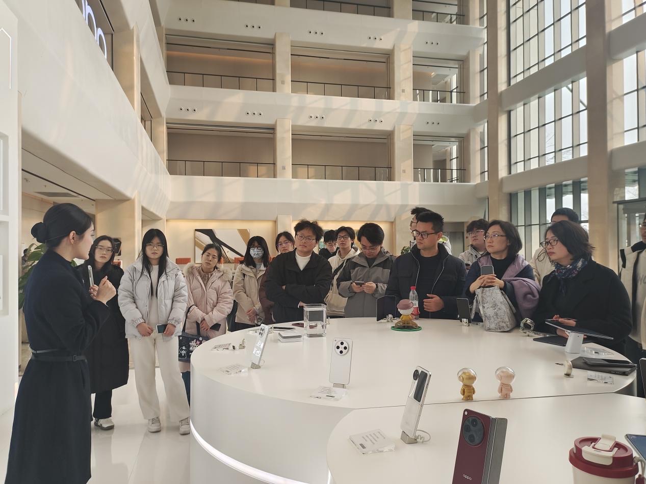在讲解员的带领下,师生参观OPPO智能生产线,自动化机械臂的精准操作、零部件组装的精密流程、产品质量检测的严格标准,让师生直观感受到智能制造的高效与严谨,对现代企业生产管理模式形成具象化认知。参观过程中,同学们积极提问,工作人员耐心解答,实现理论知识与实践场景有效衔接。