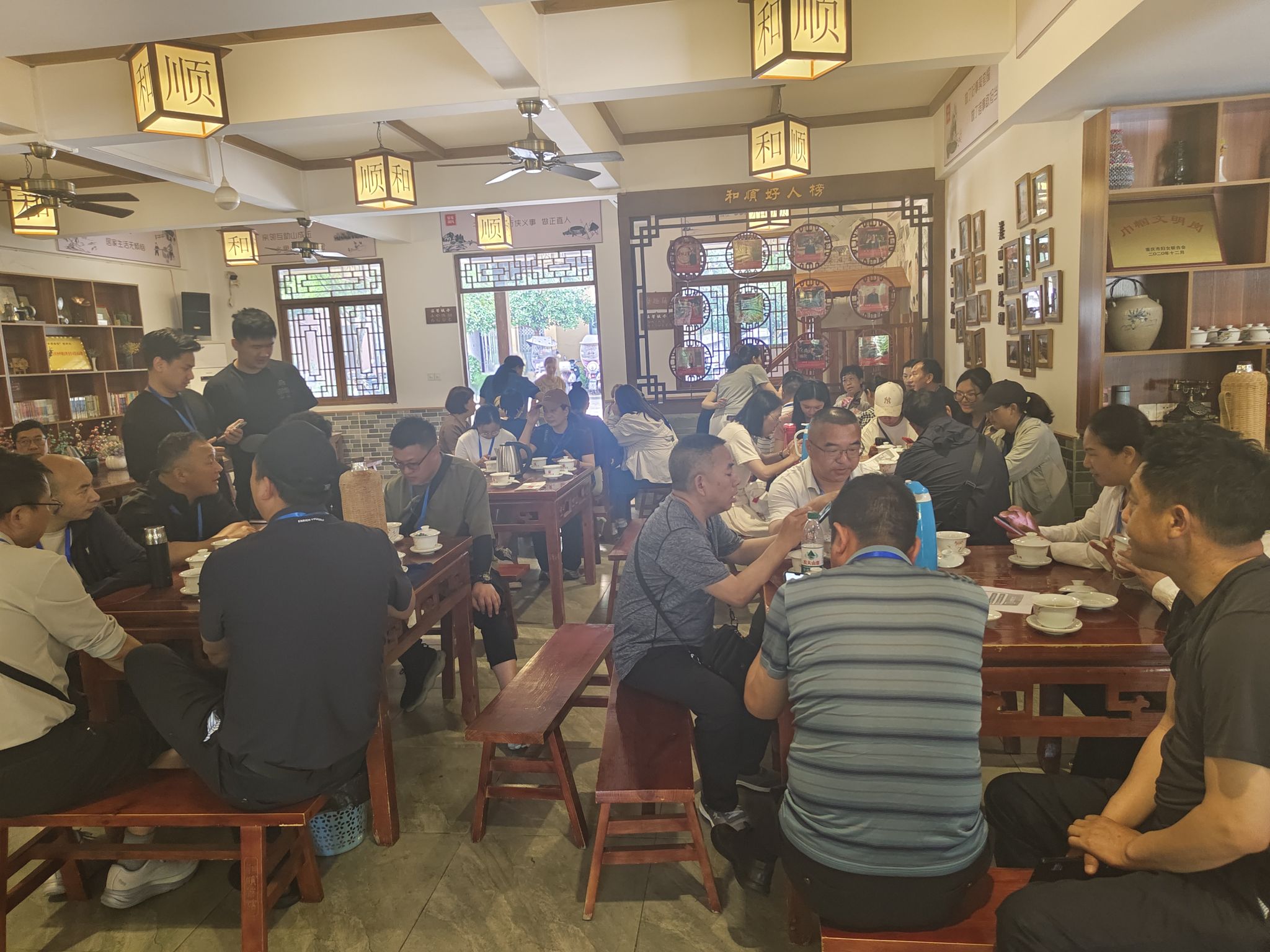 和顺茶馆作为当地基层协商民主的特色工作品牌,在促进社区和谐、推动基层治理创新方面成效显著。踏入茶馆,温馨的氛围扑面而来,墙上张贴的协商议事成果展示、居民笑脸照片等,生动地诉说着茶馆在基层协商民主中发挥的重要作用。
