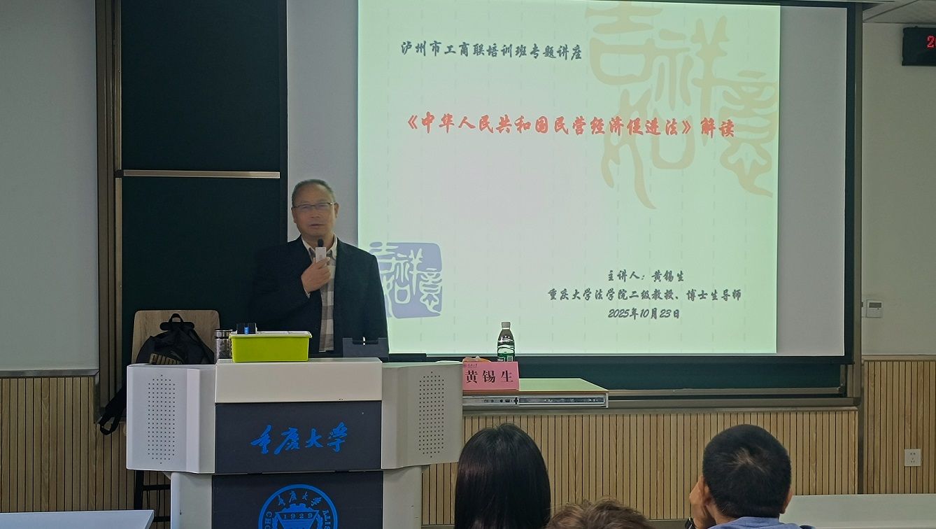 10月23日上午,一场题为“《中华人民共和国民营经济促进法》解读”的专题培训在重庆大学举行。本次课程特邀重庆大学法学院黄教授担任主讲嘉宾,为学员们系统解读这部于2025年5月20日起正式施行的我国第一部专门关于民营经济发展的基础性法律。